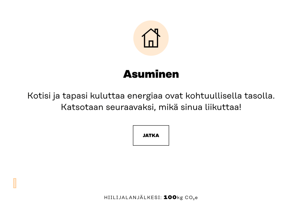 Asumisen suhteen tilanne on muuttunut parin vuoden takaisesta siten, että nyt asumme isommissa neliöissä ja vanhan kerrostalon sijaan uudessa paritalossa. Voisi luulla, että isommat neliöt (sata neliötä) tarkoittaa isompaa hiilijalanjälkeä, mutta paljon riippuu lämmitysenergian lähteestä. Aikaisempi asuntomme lämpeni kaukolämmöllä eli kivihiilen voimin. Nykyisessä kodissa meillä on sähkölämmitys ja poistoilmalämpöpumppu ja uusiutuva sähkö tulee Ekosähköltä. Nyt meitä on myös yksi asukas enemmän, joten neliöitä per henkilö on vähän vähemmän kuin kolmen hengen kesken kerrostalossa asuessamme. Hieman nurinkurisesti siis perheenlisäys pienentää asumisen osalta jokaisen perheenjäsenen hiilijalanjälkeä.
