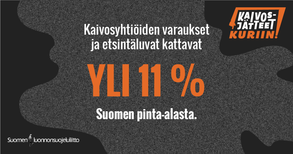 Vaikka huomio on tässä kampanjassa jäteasioissa, ne eivät suinkaan ole ainoa törkyä sisältävä asia kaivosteollisuudessa. Niistä kuitenkin lisää toisen kerran! Kaivosjätteet kuriin -kampanjasta voit lukea lisää täältä ja Luonnonsuojeluliiton uusimmat kaivosartikkelit löydät täältä.