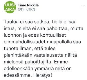 ”Pitääkö joka asiaan vetää ilmasto- tai ympäristökortti?”